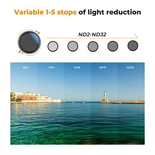 This component allows you to adjust the amount of light entering the lens by up to 9 stops. Useful for controlling exposure in bright conditions or creating long exposure effects. Reduces reflections from non-metallic surfaces like water, glass and foliage increasing color saturation and contrast. To enhance image quality and reduce glare. The filter likely features multiple layers of anti-reflective coating.
