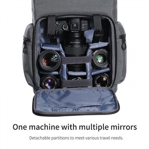 Roomy Interior Space: The camera backpack has 2 separate space for different use, the bottom main space can contain 1 camera body and 4 lens, removable divider separates the space for more tidy storage and the upper space is available for clothes and necessaries.