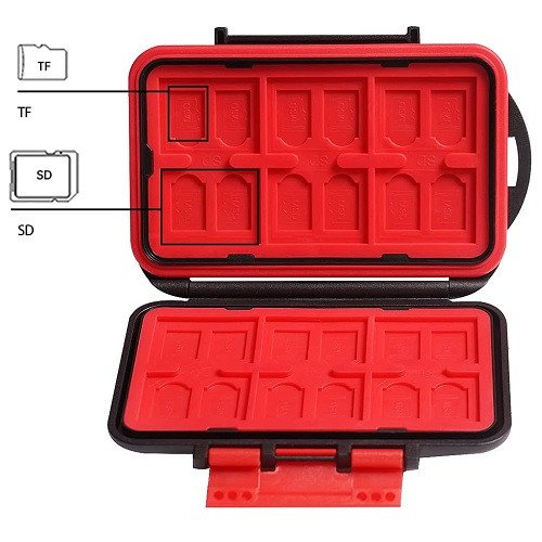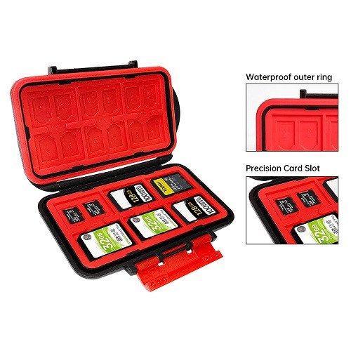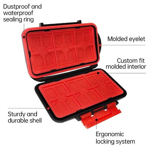 The hard case boasts a high capacity, typically offering compartments for a significant number of memory cards often around 24 slots. This allows you to store various memory card types. The interior likely features individual compartments or slotted holders for each memory card. This keeps them organized prevents them from scratching each other and makes it easy to identify and access specific cards. LENSGO hard cases might have a water-resistant seal around the closure to protect the memory cards from moisture and dust.