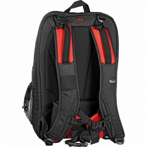 The Lowepro Fastpack 250 Backpack (Blue/Red/Black) is a lightweight, comfortable pack made to carry a digital SLR/mirrorless camera, lenses, flash, accessories and a laptop computer with a screen up to 17". It is made from a tough, water-resistant 420 denier nylon outer fabric that protects the equipment from moisture and abrasion. Side-entry compartments provide fast access to the equipment. Customize the easy-to-access main compartment with adjustable dividers. It has an ergonomic backpack harness, sternum strap and a carry strap on the top.