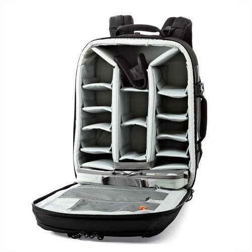 At the bottom of the main compartment is a useful, removable accessory case for your hard drives, cords, and other small items. Numerous interior and exterior pockets accommodate a wide variety of gear and help keep your backpack free of clutter and well organized. Compression straps with quick-release buckles on the front of the backpack are used for securing a pro-sized tripod. The YKK locking zippers function smoothly and have fabric pulls for easy opening.