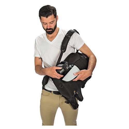 The ProTactic 350 AW provides targeted comfort and support with its ActivZone System harness. Additionally, the bag offers a built-in, all-weather cover to safeguard your gear against the elements. Five included modular accessories, including accessory case, tripod cup, and two cinch straps, are all SlipLock-compatible.