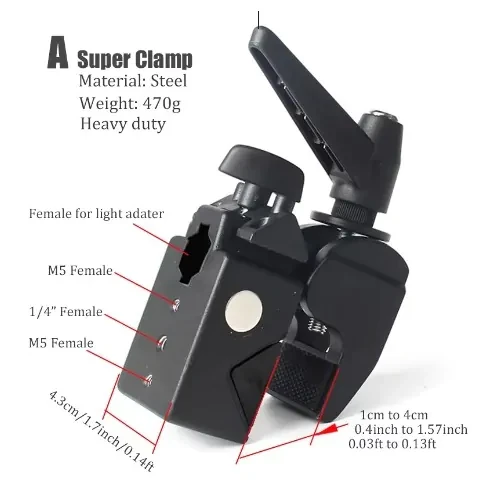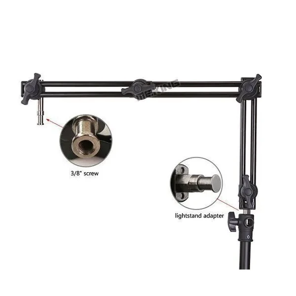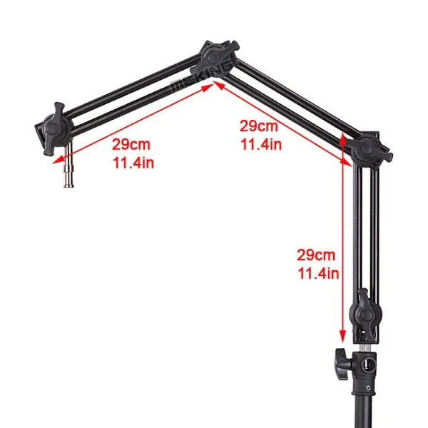 The magic arm has three sections that can be extended and adjusted to achieve different lengths providing flexibility in positioning your accessories. The arm likely allows for full 360-degree rotation, giving you complete control over the orientation of your attached accessory. The arm typically features a standard 1/4-inch screw thread at both ends. One end attaches to a tripod light stand, or other compatible mount, while the other end attaches to your camera accessory. A tightening knob or screw is used to secure the arm in place, preventing accidental movement during use.
