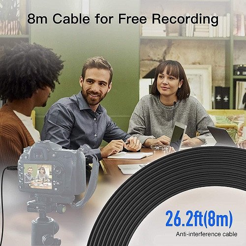 The 26.2' (8m) built-in cable provides an ample amount of length to practice most of the creative speaking and recording techniques, like standing at an optimal distance in front of the camera, sit down interviews in a natural setting, and narrative filmmaking where concealing the microphone is the key.