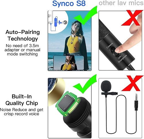 SYNCO Lav-S8, an upgrade product to our Lav-S6, is easy to connect to capture broadcast quality sound within a wider range of movement, thanks to the brand-new auto-identification system, the upgraded noise reduction technology, and the 26.2ft (8m) audio cable built in for the first time. It is used in multi-scenarios like interview recording, speech making, live web casting, and teaching.