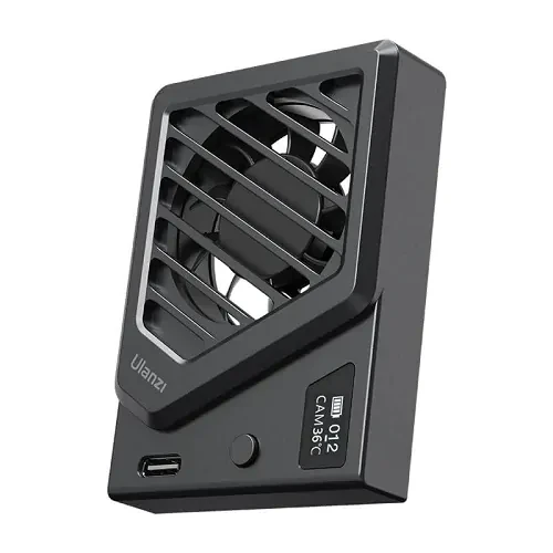 Ulanzi Camera Cooling Fan to your compatible DSLR or mirrorless camera for long video shoots to avoid overheating. This aluminum alloy cooling fan can operate at two different speeds. While level one speed provides near-silent operation, level two speed provides higher cooling at the cost of battery life. A USB-C port allows for convenient charging. An OLED display provides real-time fan speed and temperature, which ranges from 73 to 158°F.