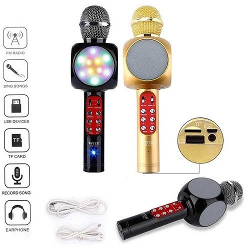 The Wster WS-1816 Wireless Karaoke Microphone is a portable and affordable karaoke machine that can be used with any Bluetooth-enabled device. It features a wireless microphone with a 10-foot range, a built-in speaker, and a variety of sound effects and LED lights. The Wster WS-1816 is perfect for parties, karaoke nights, or just for singing along to your favorite songs. The Wster WS-1816 Wireless Karaoke Microphone is a portable microphone specifically designed for karaoke enthusiasts. It offers wireless connectivity, allowing you to sing and perform without the restriction of cables.