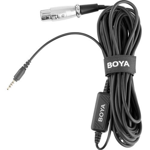 The BOYA BY-BCA6 is a Microphone Cable with integrated pre-amplifier, connecting XLR dynamic microphone, XLR battery powered condenser microphone with 3.5mm TRRS equipment.