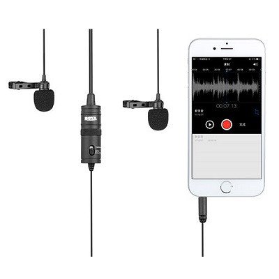 The BOYA M1DM Dual Clip Microphone is perfect for interviews and other recordings. This clip-on lapel microphone features an omnidirectional condenser microphone for superior sound quality, and it’s compatible with a variety of audio/video recording devices.