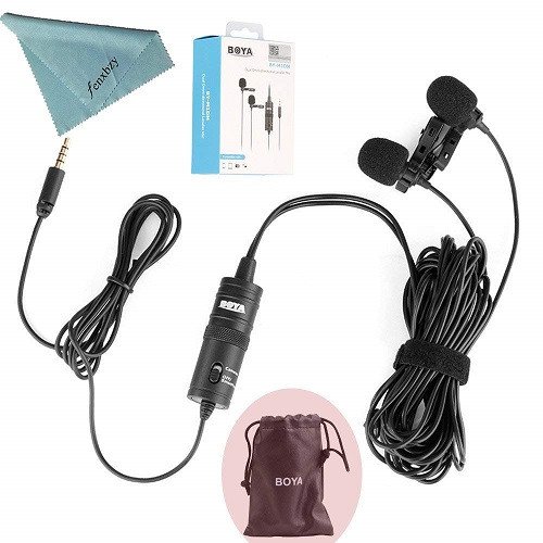 The BOYA M1DM Dual Clip Microphone is the perfect solution for anyone looking for a lapel mic. This omnidirectional condenser microphone is great for interviews and provides an excellent off-axis response. The included carrying pouch makes it easy to take with you wherever you go.