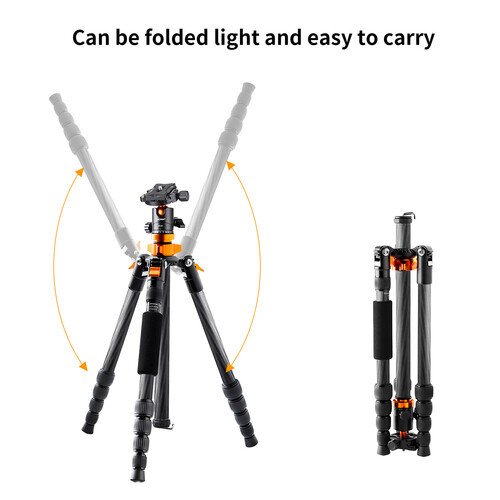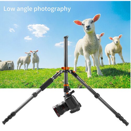 The K&F Concept KF09.094 SA225C1 D225C2 Carbon Fiber Tripod with Arca-Type Ball Head from K&F Concept is a lightweight and versatile tripod for both studio and travel. It has a load capacity of up to 17.6 pounds, so it is suitable for use with compact, mirrorless, and DSLR cameras with large lenses. It has a maximum height of 56", but thanks to its reverse-folding leg design, it collapses to a mere 15.7" length, making it easy to store or carry almost anywhere. The legs offer independent spread and three locking angles and can also be reversed for inverted shooting for a low to the ground perspective. In addition, one leg can be unscrewed to convert into a 59.8"-tall monopod for situations where a full tripod may be too bulky or slow, like when shooting wildlife or sports.