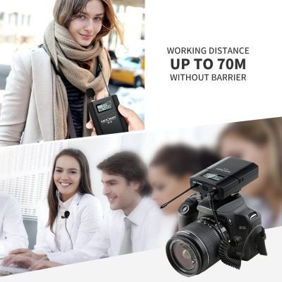 - This microphone is suitable for professional photography, video recording, news coverage, lectures and other occasions; Wireless transmission distance (without obstacles) can reach up to 70 meters.