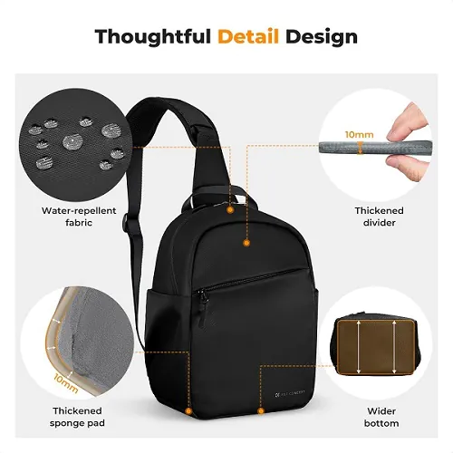 The K&F Concept KF13.171 Crossbody Sling Camera Backpack is a compact and versatile bag designed for photographers seeking convenience and protection for their gear. With a 5-liter capacity, it accommodates a DSLR, SLR, or mirrorless camera along with essential accessories. The bag’s crossbody sling design ensures quick and easy access to your equipment, making it ideal for on-the-go photography. Its compact size is perfect for carrying a camera body and a couple of lenses or accessories. Constructed from durable, water-resistant materials, the backpack safeguards your gear against light rain and moisture.