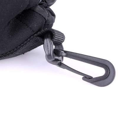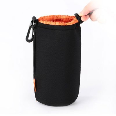 The pouch has a drawstring closure that allows you to easily access your lens while keeping it securely in the pouch. It also has a carabiner clip that allows you to attach the pouch to your camera bag or belt loop for easy carrying.