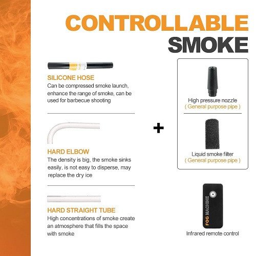 The Smoke S features an internal lithium-ion battery that can provide up to 25 minutes of continuous smoke and can cover an area of 20 cubic meters in a single minute. The kit includes six bottles of smoke fluid a remote control a silicone hose a hard elbow a hard straight tube, a high-pressure nozzle and a liquid smoke filter. Also included are a USB-C charging cable and a carrying case.