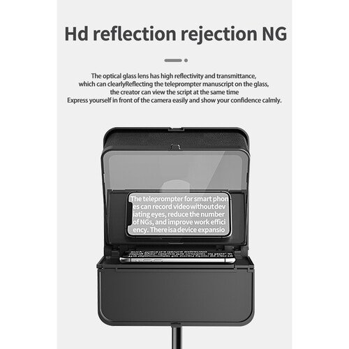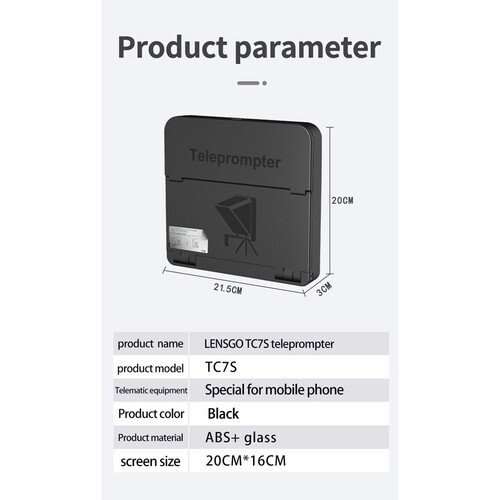 The LENSGO TC7S Portable Teleprompter for Smartphones is a teleprompter designed to assist you in delivering clear. Confident presentations or recordings directly while looking at the camera lens. This is a crucial component that allows you to see the scrolling text reflected on the glass while the camera captures a clear image of you looking directly into the lens. The LENSGO TC7S likely works with a dedicated app that allows you to import your script and mirror the text making it readable for you while appearing normal to the camera.