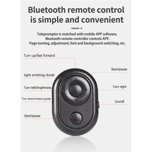 Folds down compactly for easy transport in your bag or backpack. This makes it ideal for situations where you need a teleprompter on the go, like interviews, presentations or even online video creation. This teleprompter should be compatible with a wide range of smartphone sizes. Double-check the specifications to ensure your phone fits. Come with a Bluetooth remote control that allows you to control the scrolling speed and playback of your script without having to touch your phone.