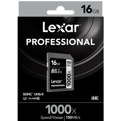 Capture Full HD, 3D, and 4K content with the 16GB Professional 1000x UHS-II SDXC Memory Card from Lexar. This SDHC memory card meets the UHS Speed Class 3 specification with a minimum data write speed of 30 MB/s and maximum data read speed of up to 150 MB/s. While this card is designed to meet the needs of those requiring enhanced data transfer rates, it remains backwards compatible with devices requiring UHS-I, Class 10 memory cards. To safeguard against possible data loss, this card includes downloadable Image Rescue software designed to recover most photo and video files. High-speed performance-leverages UHS-II technology (U3) for a data read speed up to 1000x (150 MB/s) Captures high-quality images and extended lengths of enhanced 1080p full HD, 3D, and 4K video with a DSLR camera, HD camcorder, or 3D camera High-speed file transfer from card to computer to dramatically accelerate workflow Includes downloadable Image Rescue software to recover most photos and select video files Backwards compatible with UHS-I devices