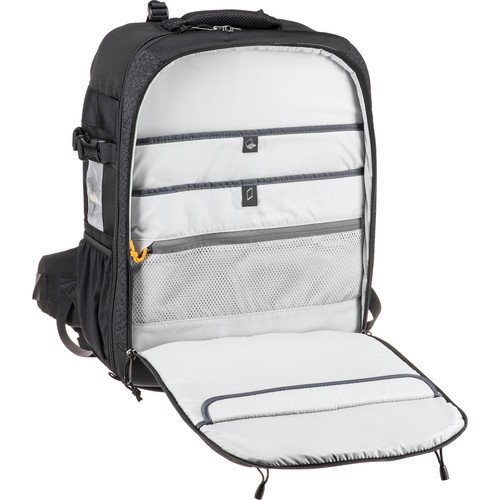 At the bottom of the main compartment is a useful, removable accessory case for your hard drives, cords, and other small items. Numerous interior and exterior pockets accommodate a wide variety of gear and help keep your backpack free of clutter and well organized. Compression straps with quick-release buckles on the front of the backpack are used for securing a pro-sized tripod. The YKK locking zippers function smoothly and have fabric pulls for easy opening.