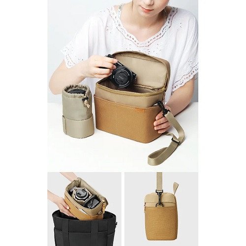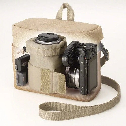 This fashionable soft carrying case, available in either black or tan, features an innovative bag-in-bag design to ensure total protection of all your gear. The main compartment is spacious enough to house your α or NEX camera with a lens attached, while the separate lens pouch – which doubles-up as a divider – can also fit a 55–210mm lens.