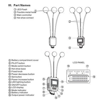 3 groups of flash light with high brightness LED beads, support flash and continuing lighting functions.