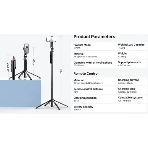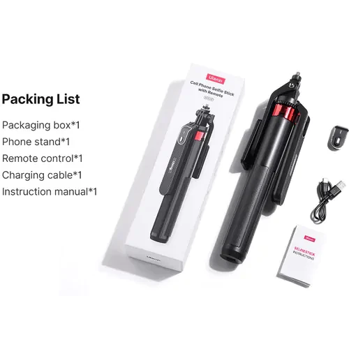 The MA09 Bluetooth Remote Control Selfie Stick from Ulanzi can function as a tripod or a selfie stick. Built using ABS plastic and zinc allow, its head rotates 360° so you can shoot from virtually any angle. When fully retracted, it is only 11.6" in length, but can be extended up to 70.8". The retractable phone holder has a clamping range of 2.6 to 3.5" and other features include a 1/4"-20 threaded mount and a GoPro mount. It also includes an embedded wireless Bluetooth remote, which can be recharged in 30 to 60 minutes. Included is a charging cable. Compatible with most smartphones weighing up to 17.6 oz and with a size of 4.7 to 7"