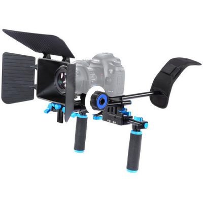 The YELANGU D221 Shoulder Rig allows you to capture stable handheld shots for an extended duration. The system includes the C2 Camera Cage, D2 DSLR Shoulder Rig, M1 Matte Box, and the F0 Follow Focus.